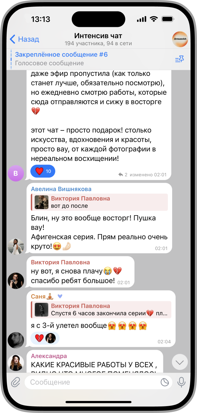 Кроме того, с вами навсегда останется чат-сообщество фотографов, где можно